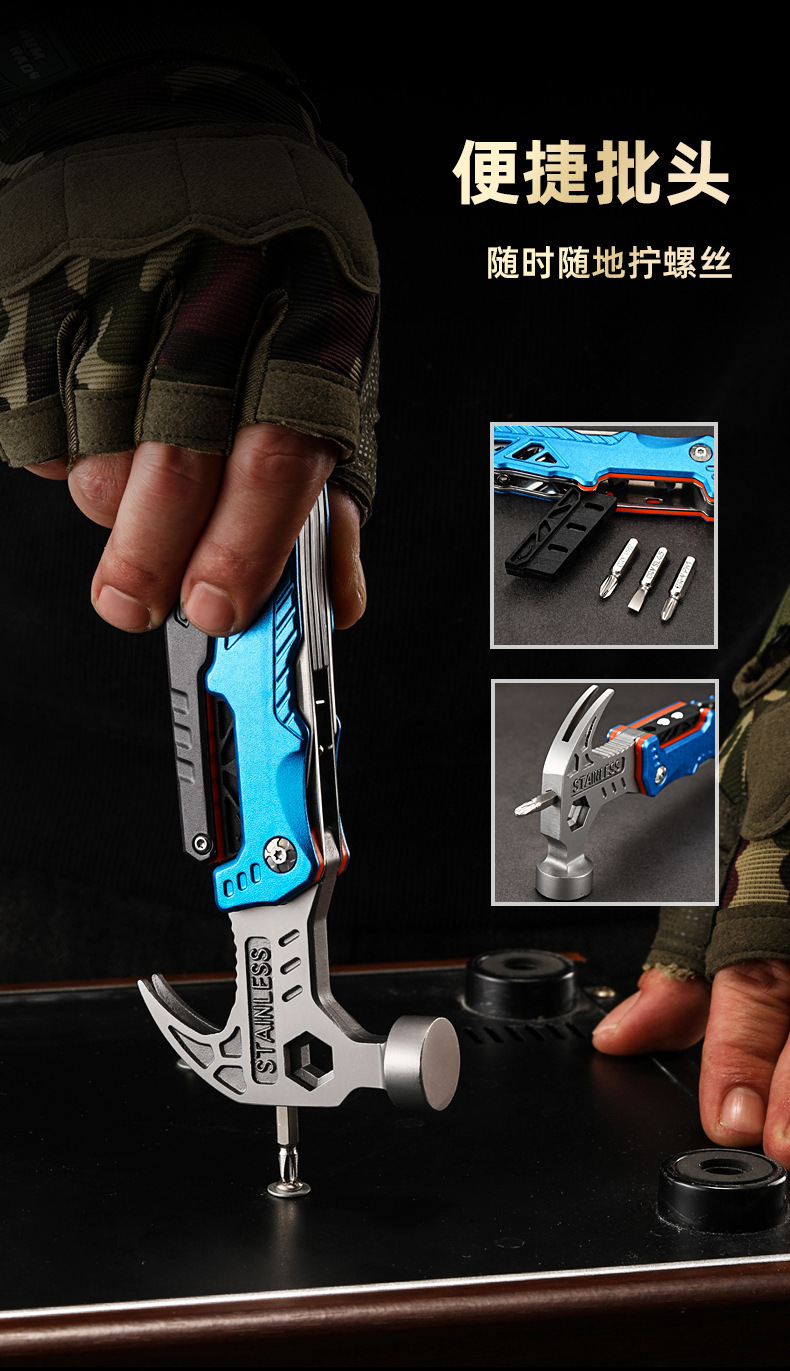 multi-function folding mace pliers combination tool hammer outdoor claw hammer camping stainless steel emergency vehicle tool